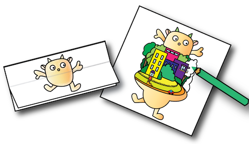 O-Do-Roki is the name of a special type of coloring page that you color and fold to create a unique surprise.