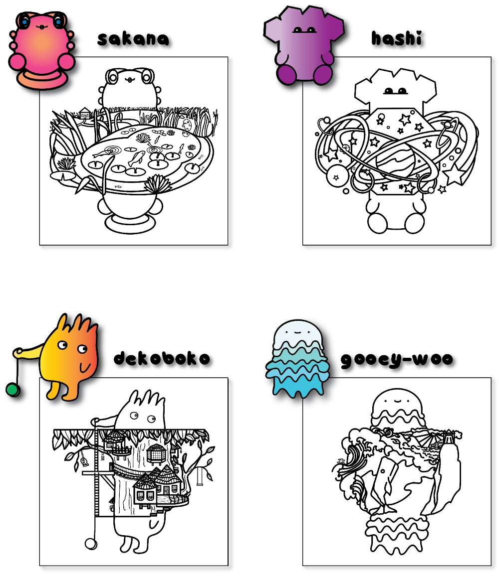 Dive into the fun and unique world of O-Do-Roki. Book 1 contains 10 baby monsters with their own world inside! Simply color, fold and enjoy the surprise!